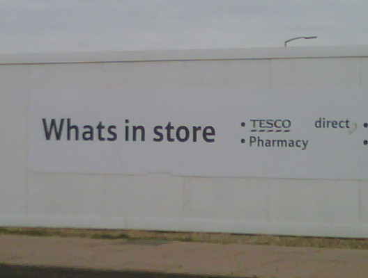 It amazes me that the UK’s largest retailer can erect banners like this outside of one of its latest flagship ‘extra’ stores and not feel slightly ashamed at the damage it does. OK, I go to Tesco looking for value, but I still expect a professional and slick ‘experience’. When I’m greeted by something like this, my heart sinks.