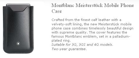 Just read the advertisement. A premium MontBlanc mobile phone holder, apparently suitable for 3G, 3GS and 4G models.