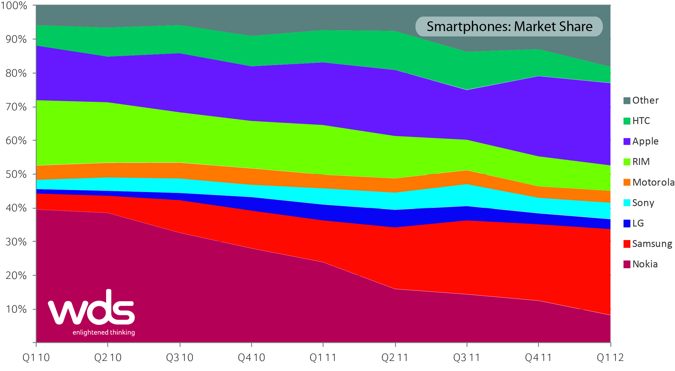 - Samsung doubled its smartphone market share in 12 months (Q1 2011-Q1 2012)