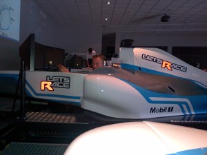 At first skeptical, I left having had one of the best few hours of ‘motor sport’ I can remember. Pure Tech Racing houses several linked simulators; you are briefed on driving technique and racing etiquette before lowering yourself into an F1-style body shell (with genuine feet in the air seating position). In front of you are three screens, wrapping around your field of vision, and headphones to pipe the action directly into your ears. After 15 minutes qualifying you race. The simulators offer full movement, the steering wheel (a genuine race-wheel I was told) delivers force feedback, and within minutes you forget that the whole experience is virtual.