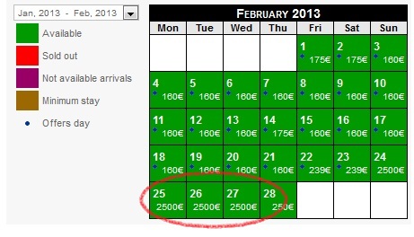 The screen grab below is from a rather nice hotel in a central location. From an average nightly rate of 160 euros in February, the rate jumps to 2500 euros per night during MWC. That’s a price increase of 1,462%.