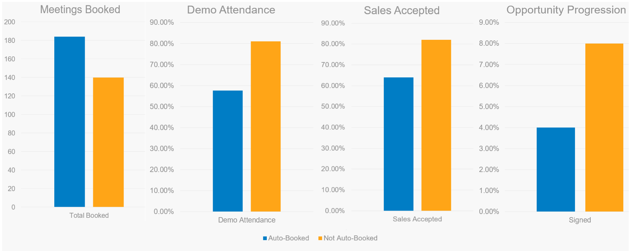Opportunities that came via the appointment scheduling tool had a 40% less chance of advancing to the later stages of the sales cycle. This resulted in less time being available for sales reps to progress genuine high-value opportunities.